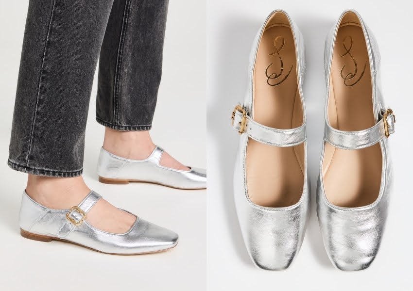 ❊ Reformation Bethany Ballet Flats,銀色瑪麗珍鞋非常好搭,今年一定要有一雙銀色的